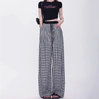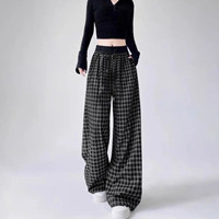 【復古格紋高腰褲】時尚百搭,高腰顯瘦,透氣不悶,垂順闊腿更顯高,不挑身材,打造屬於你的大長腿!