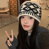 【復古提花針織毛線帽】韓系秋冬保暖遮臉漁夫帽素顏顯臉小水桶帽