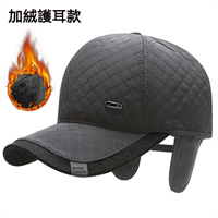 冬季中老年加絨男士棒球帽菱形格刺繡鴨舌帽戶外保暖護耳帽