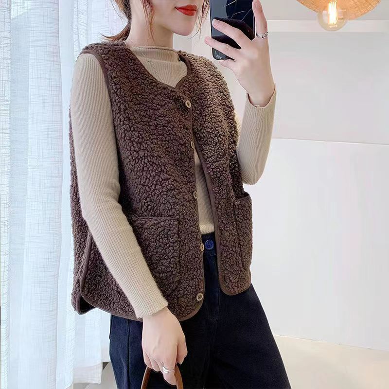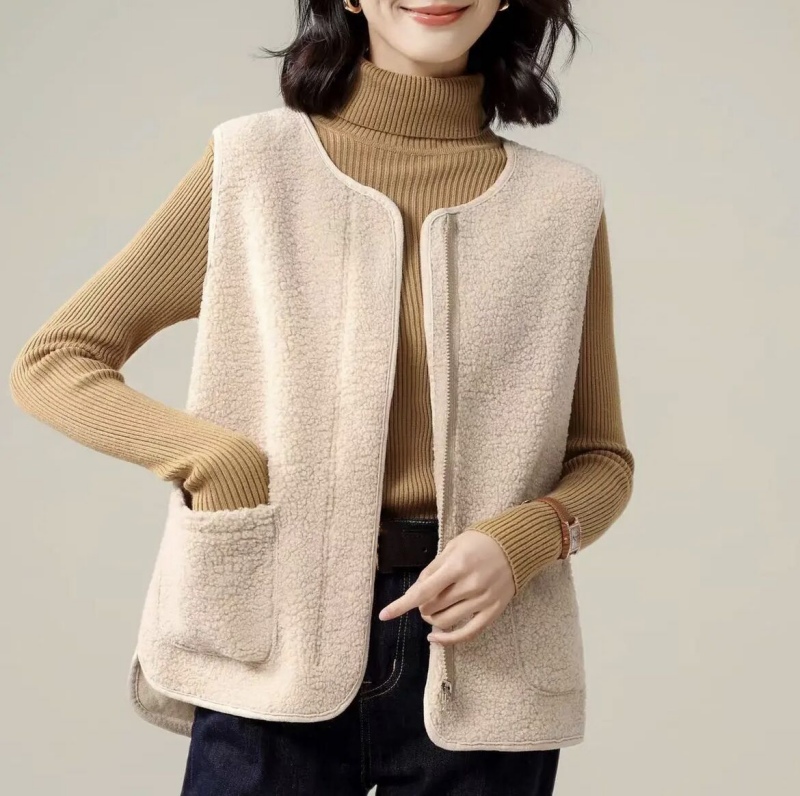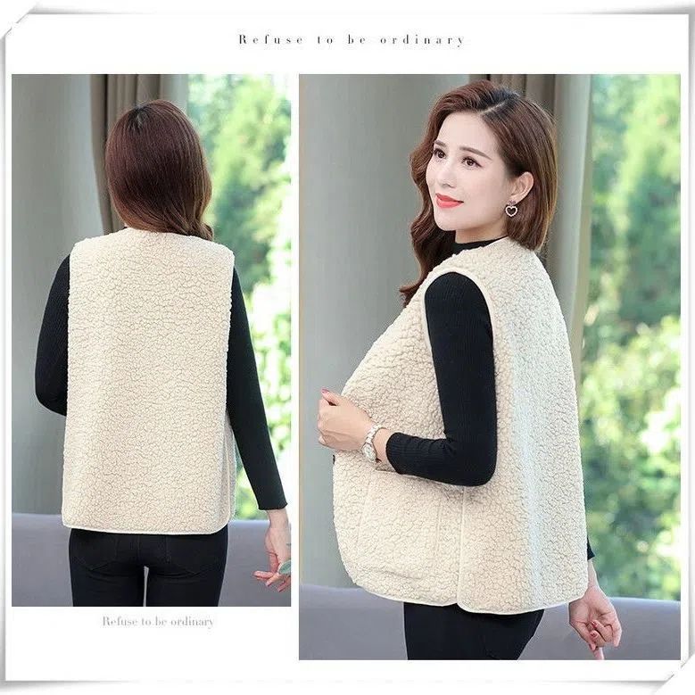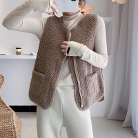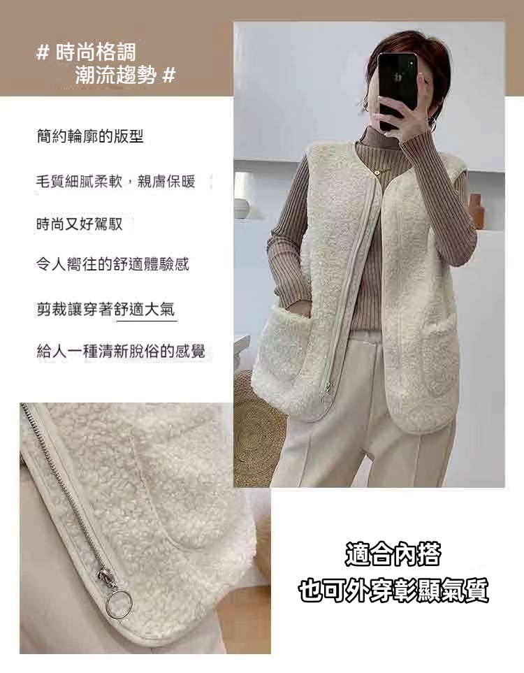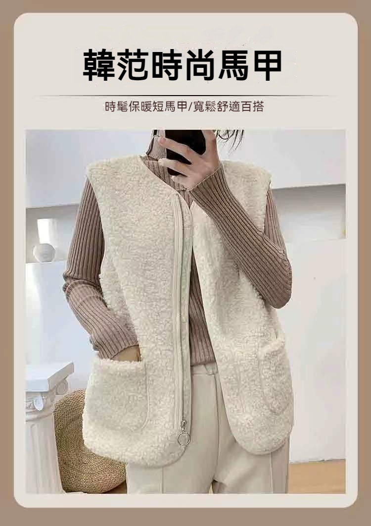 韓版女士羊羔絨馬甲 羊絨毛質細膩柔軟,親膚保暖舒適百搭,給人一種清新脫俗的感覺!