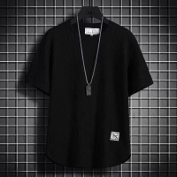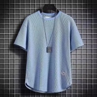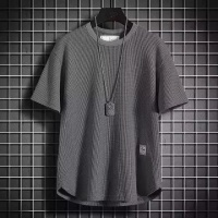 華夫格高檔冰絲上衣薄款 男士短袖T卹 寬鬆大碼肥胖圓領 半袖五分袖