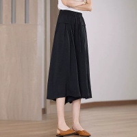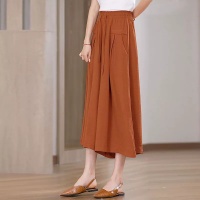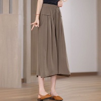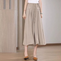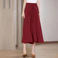 韓版七分冰絲闊腿褲 夏季休閒百搭 高腰闊腿褲裙 鬆緊腰系 垂感寬鬆 冰絲材質透氣又涼爽