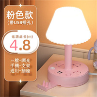 「三插孔4.8米帶USB」護眼多功能臺燈、插座學習床頭夜燈插頭臥室燈