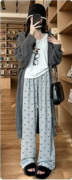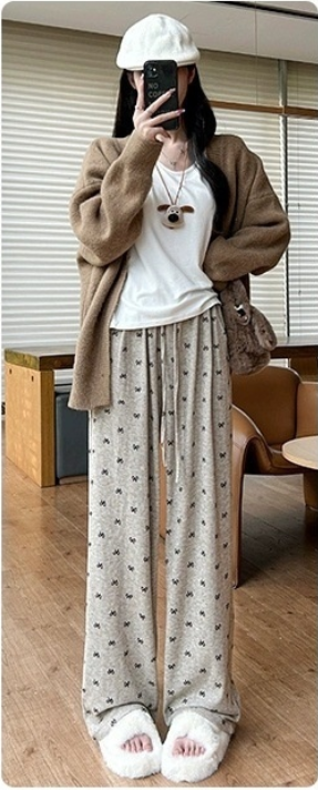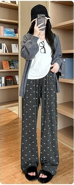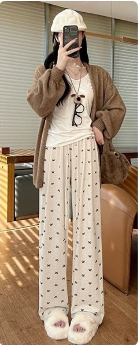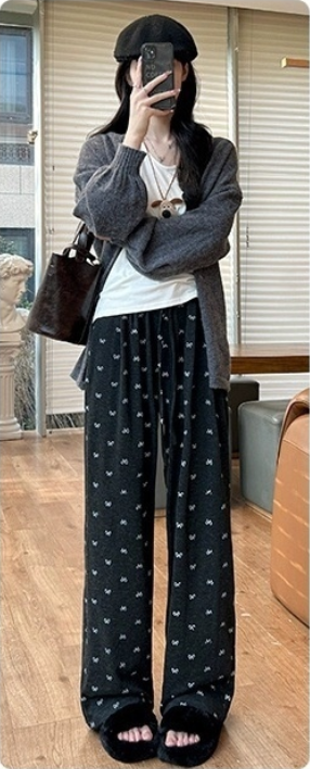 糯米蝴蝶結闊腿褲女春夏韓版垂墜感軟糯長褲寬鬆顯瘦直筒休閒褲子