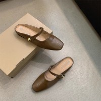 2024復古小方頭平底包頭拖鞋 時尚外穿懶人溫柔鞋子,夏日出門的百搭款式鞋子