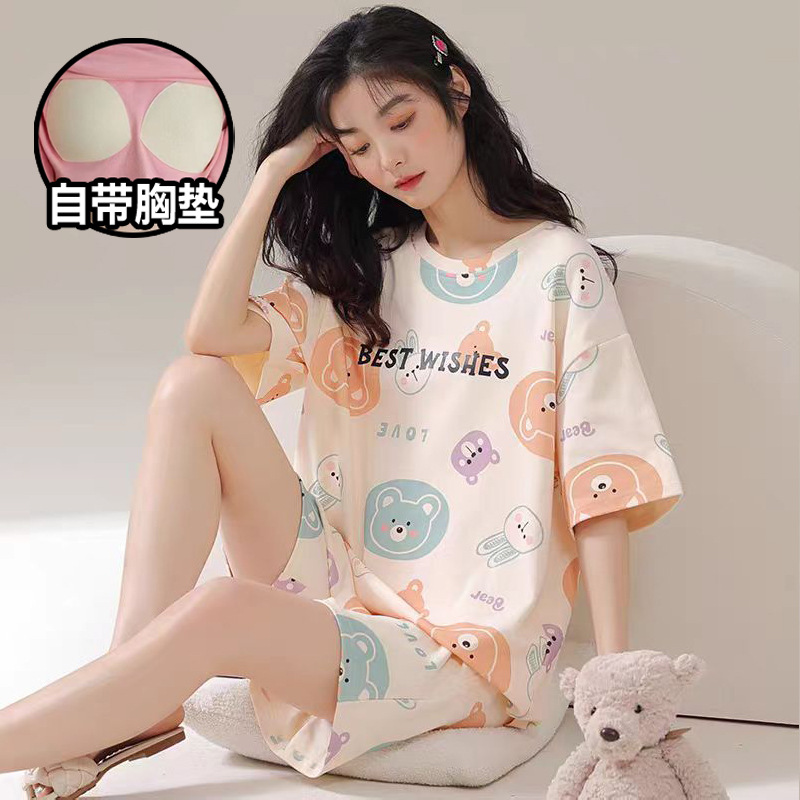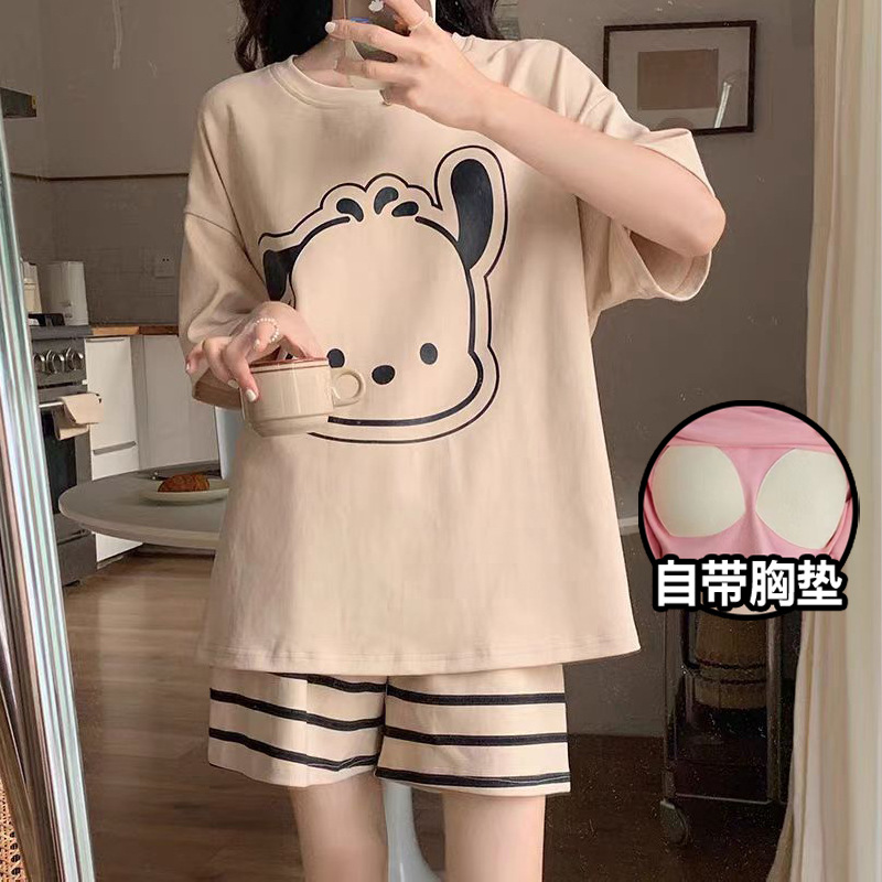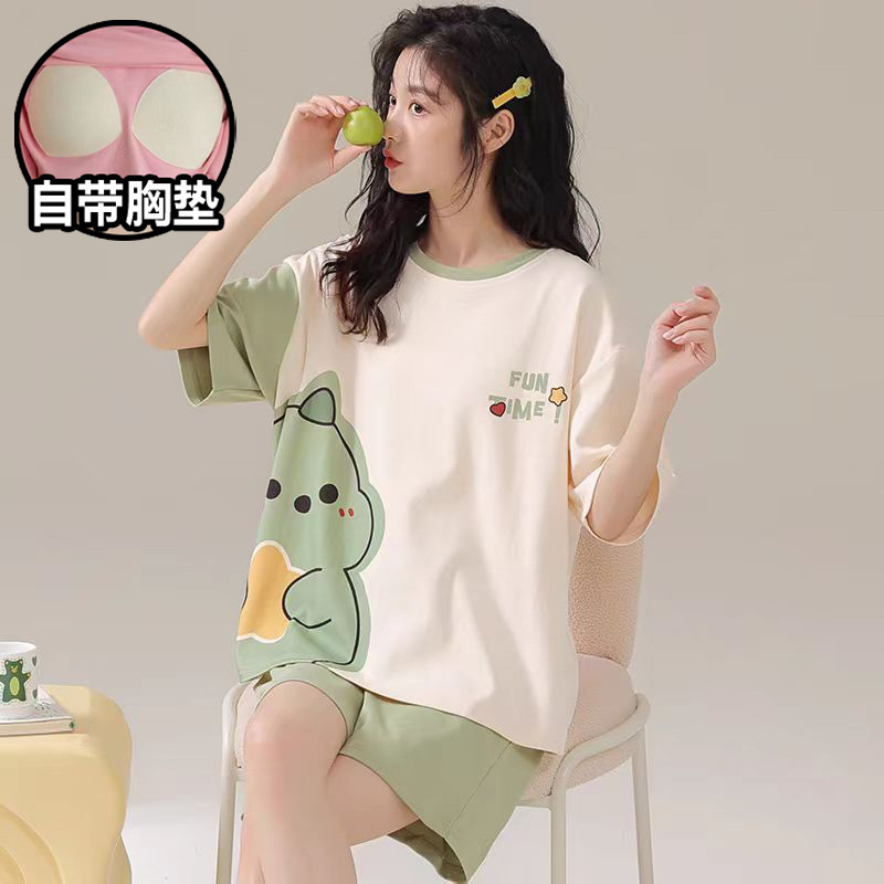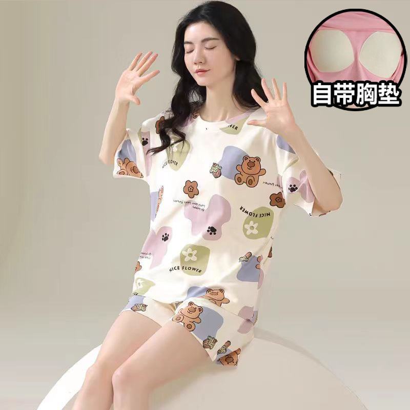 夏季睡衣套裝,帶胸墊睡衣,寬鬆大碼,家居服睡衣夏天可外穿!新品上市,限時搶購