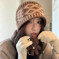 【復古提花針織毛線帽】韓系秋冬保暖遮臉漁夫帽素顏顯臉小水桶帽