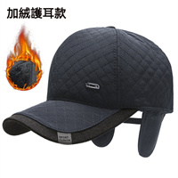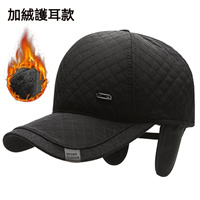 冬季中老年加絨男士棒球帽菱形格刺繡鴨舌帽戶外保暖護耳帽