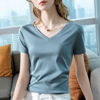 【正肩修身彈力短袖】簡約V領彈力T卹,氣質收腰遮肚子上衣