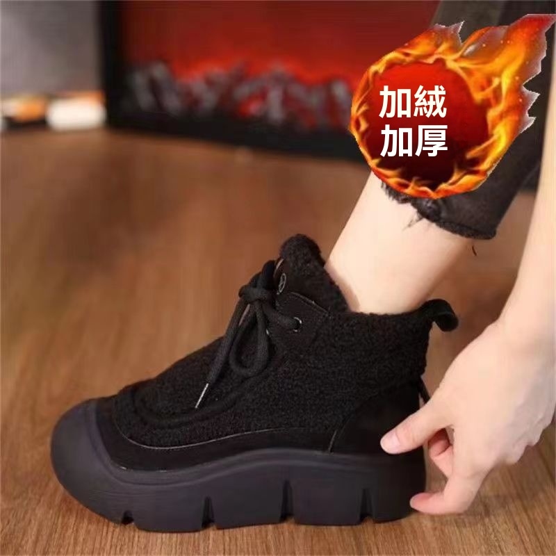 冬季爆款棉靴 加絨保暖 高幫平底靴 軟底軟面 時尚暖絨羊羔毛女