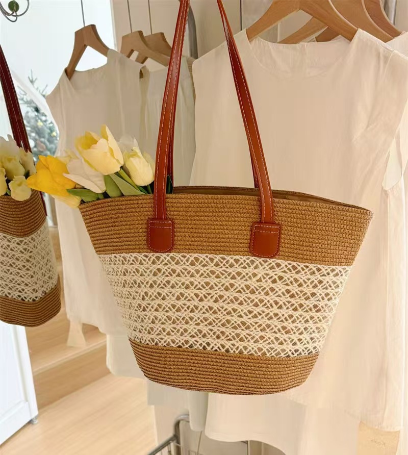 選用天然柔韌草莖,純手工匠心編織,打造獨一無二的托特包。輕盈透氣,承載你的日常優雅與愜意,隨時散發清新田園氣息